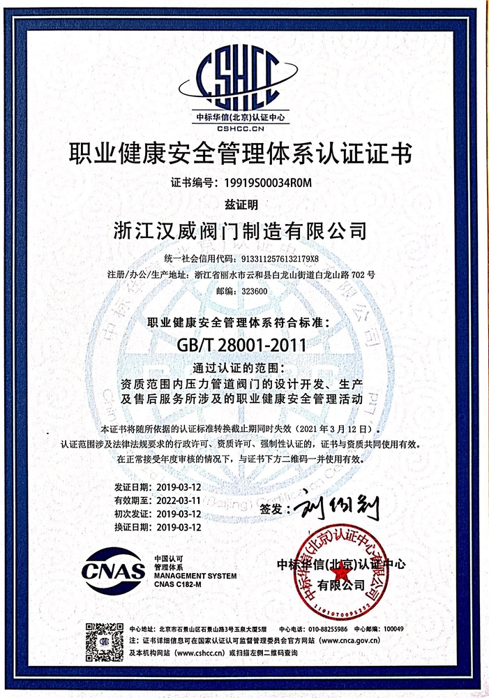 About Hanwei Zhejiang Hanwei Valve Manufacture CO,.LTD was established in 1990.We have three manufacturing bases and encompass more than 20000 square meters with building area of 8800 square meters. We have first class equipment for lathe,milling, boring,drilling,plane and grinding,and also we have mechanical test and pressure test and there is spectrometer in our test lab in order to make sure the quality. —————————————————————————————————————————————————————————————————————————